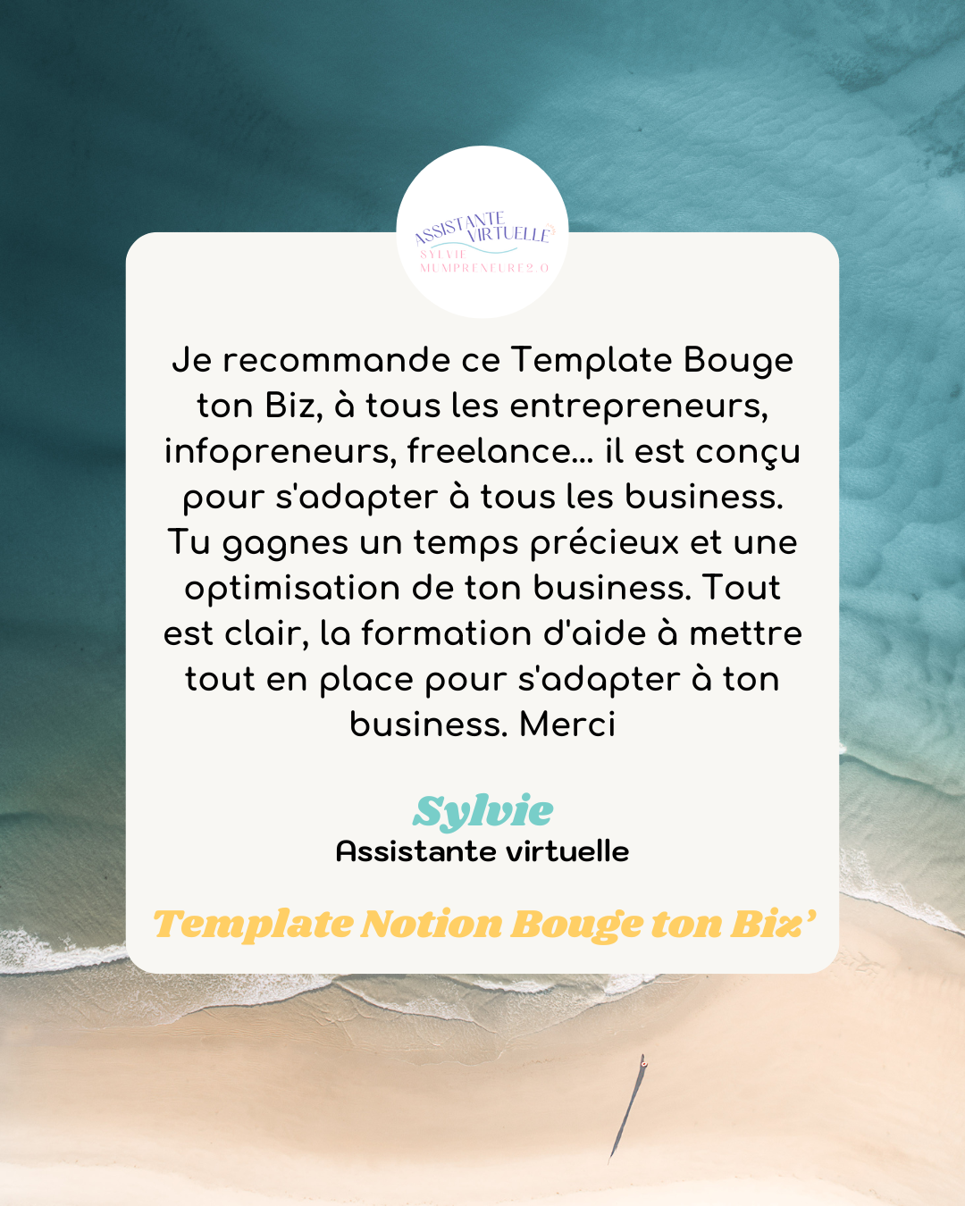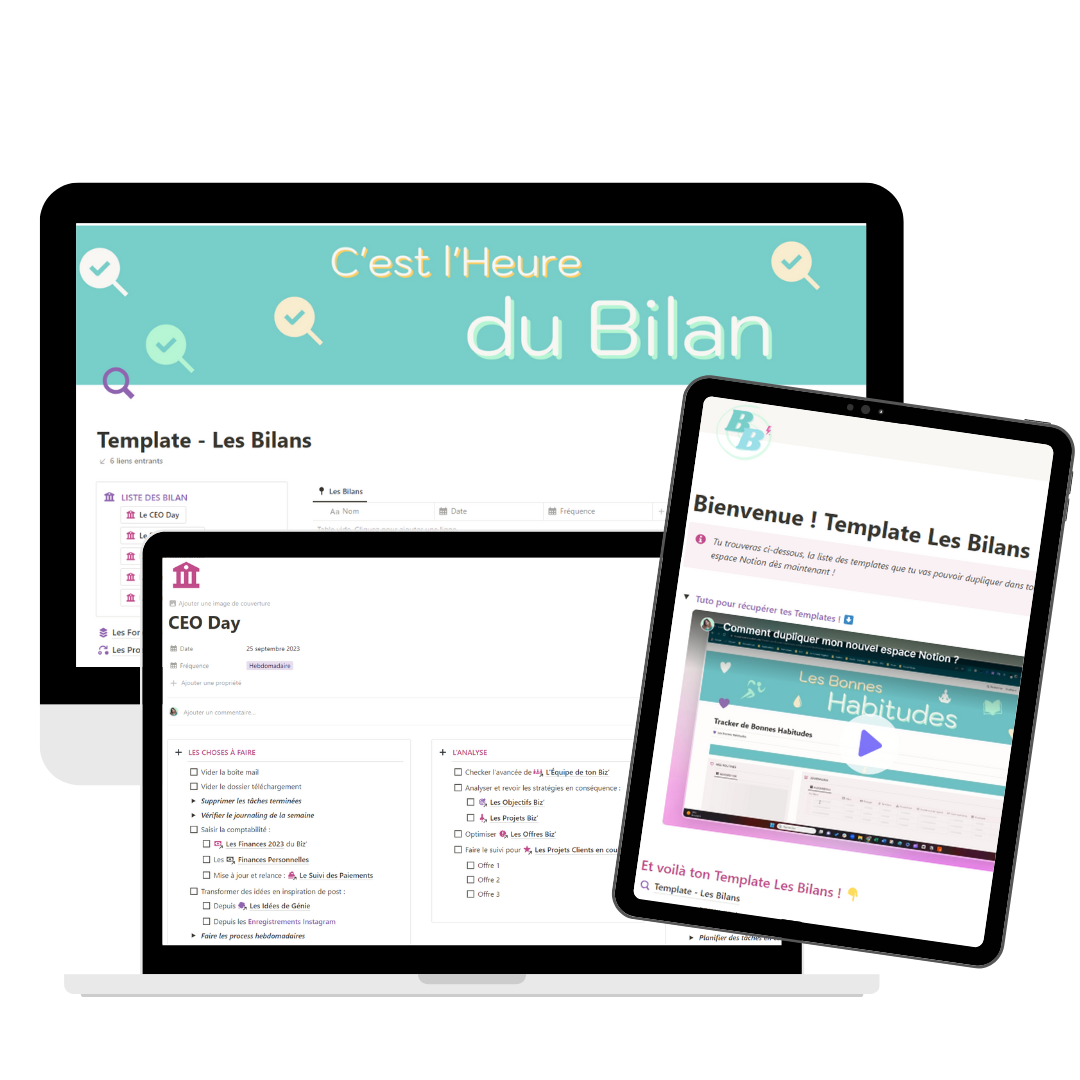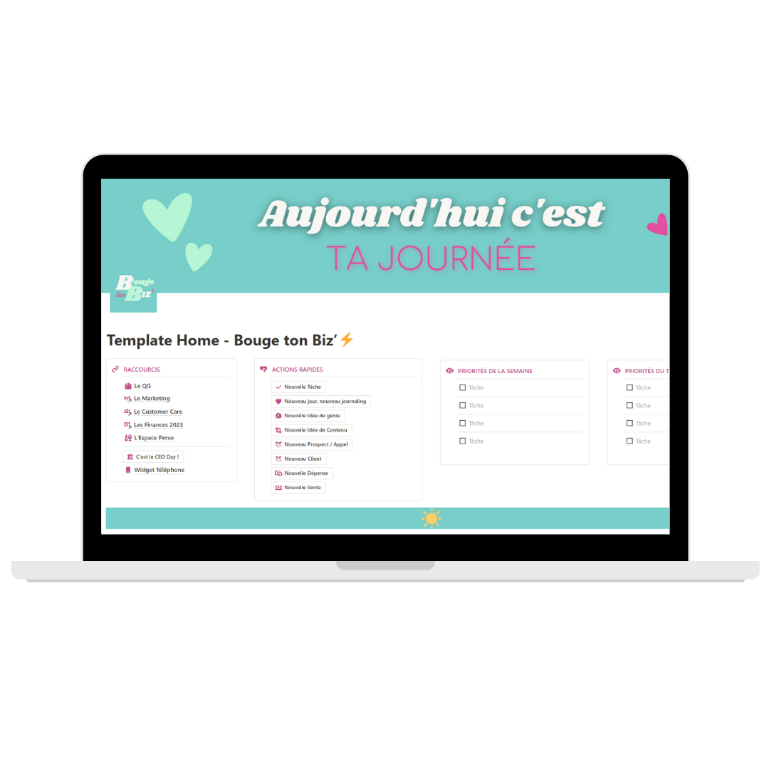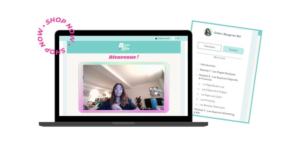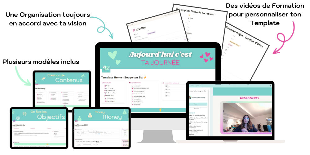 Évidemment, tu vas recevoir tout de suite après ton achat, l'Espace Notion Bouge to Biz' pour :