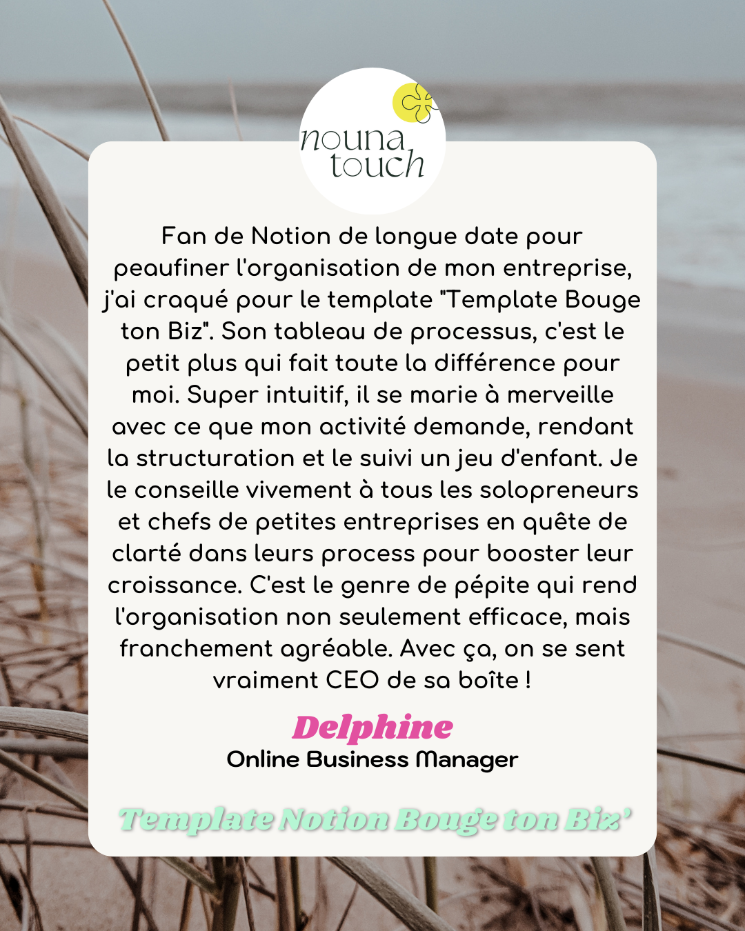 4 heures par semaine, c'est le temps que j'ai moi-même gagné en utilisant l'Espace Notion Bouge ton Biz' au quotidien. Du temps à passer avec mes proches ou à voyager.